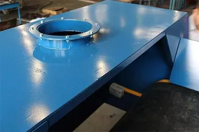 Верхний кожух может изготавливаться как полностью металлический, так и со смотровыми вставками. Верхний кожух защищает производственные помещения от технологической пыли, а так же является дополнительным элементом промышленной безопасности.